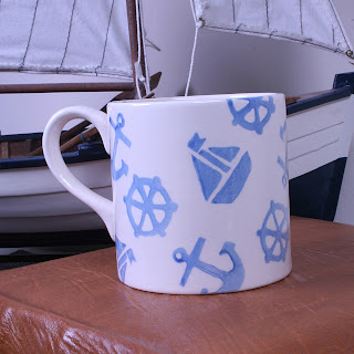 Boys, have you dreamt of sailing the world, well what could be nicer than to have your own handmade Nautical mug, hand sponge decorated in blue.