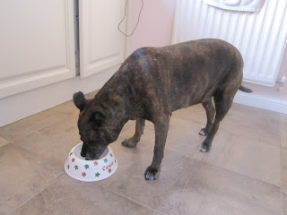 Cassie the Staffordshire bulldog loves her new Christmas present, her new bowl from Peregrine Pottery. Thank you for sending us this picture, if you have brought any of Peregrine Pottery products why not send in a picture for us, we really love them.