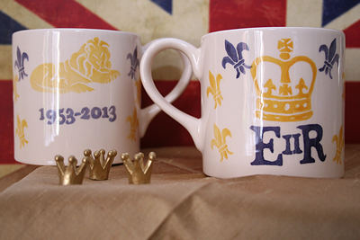 We have produced some beautiful earthenware in honor of Queen Elizabeth II, embellished with Fleur De Lys in gold and purple with a lion and a crown. Please let us know what you think.