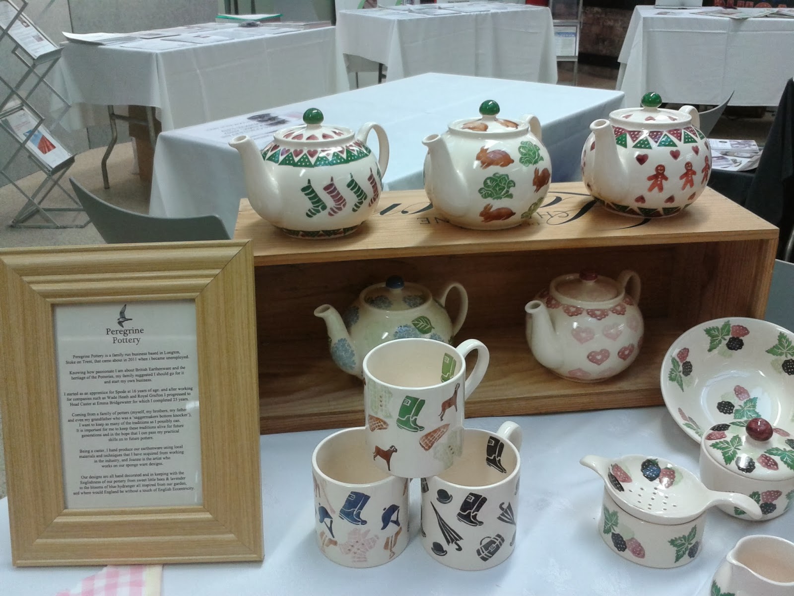 Peregrine Pottery exhibited at Ceramics 2013 which this year was held at the Core Longton, lucky for us as our unit is in Staffordshire House in Warren Street. Local Labour MP Tristran Hunt came over and introduced himself and we chatted about our earthenware. There was also an Introduction from Max Dudson of Dudsons and a talk from Paul Farmer of Wade.